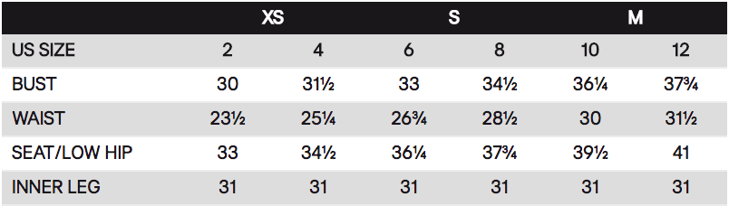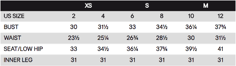 Following are the sizes for tops, blouses, dresses, pants and skirts: